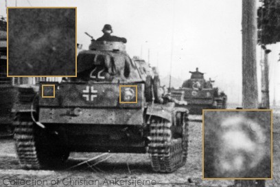 On 1 November, the Oberkommando des Heeres (Army high command)Look up term ordered the introduction of unit insignia of the 10 armored divisions. These were to be placed on all motor vehicles. On tanks the insignia were to be placed on the front, rear, and left side of the superstructure.13. Pz. Div. - I a - Anl. z. Kriegstagebuch Nr 2 : 19. 10. - 12. 11. 39., Anl. I 15. 11. - 10. 12. 39. NARA T315 R112 W1029/12.
